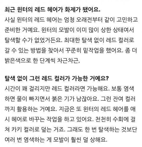 로제는 뿌리만 빼서 그런거 아닐까..? 윈터는 이거했다가 블랙덮고 빼고 다시 블랙덮고 많이 했기도 하고 원래 블랙에서 또 염색하는게 진짜 머리 많이 상함 빼도빼도 블랙물나와서
