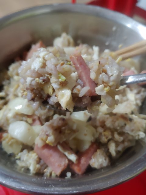 햄.양파.계란.간장.참깨.참기름.후추. 들어갔음