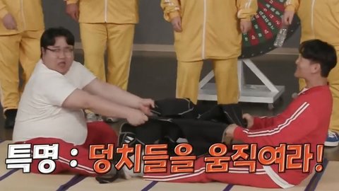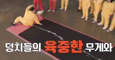 치약을 바닥에 놓고 그 위에 덩치들이 앉아서