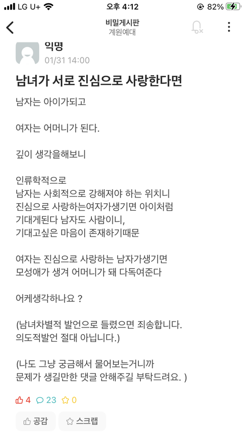 남자들이 여자욕하고 이용하고 그런글 내용들은 다 그냥 그러려니 하는데 여자가 남자이야기하면 갈라치기다 어쩌구 조카 머라함 ㄷㄷ