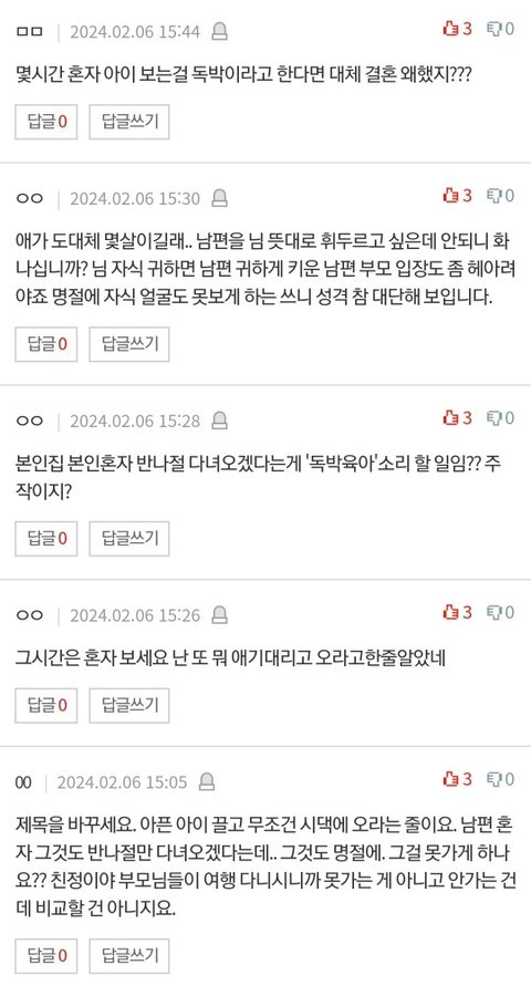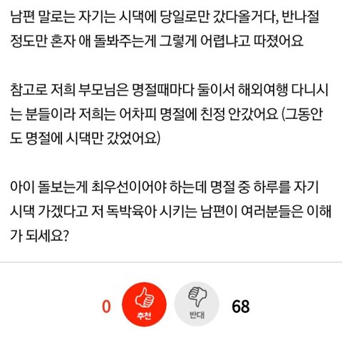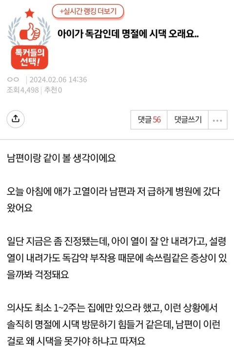 [원본지킴이] 아이가 독감인데 명절에 시댁오래요