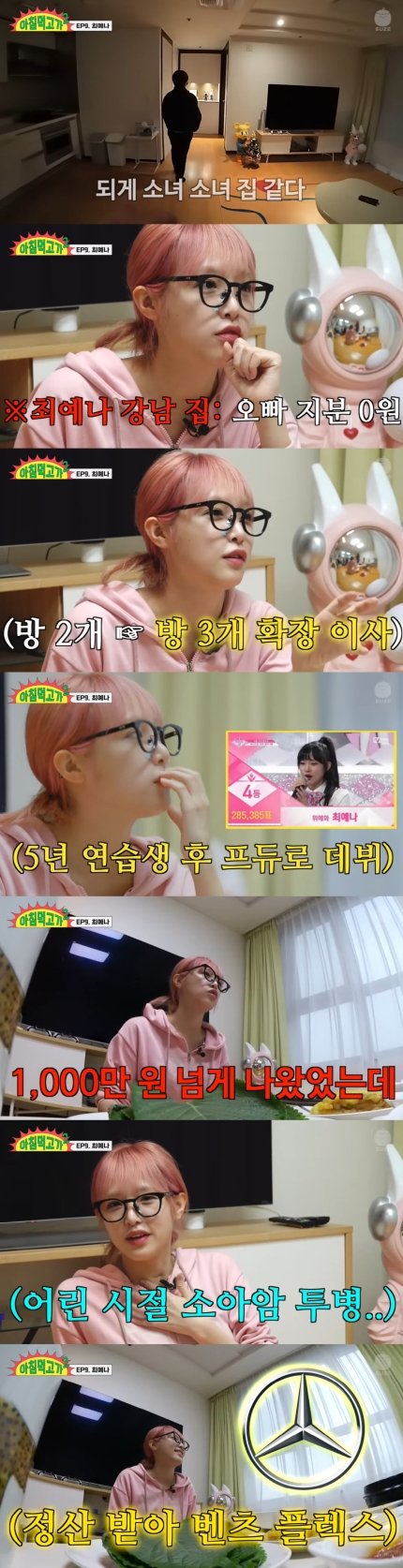 이날 장성규는 "(최예나가) 이번에 새로운 집으로 이사를 갔고 최초 공개라고 들었다. 논현동이면 좋은 동네인데 몇 평을 늘렸는지 궁금하다. 전용면적을 몇 평 늘렸는지 물어봐야겠다"고 말했다.