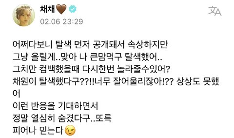 오늘 허무하게 카카오 영상이 공개되버려서 금발 탈색 강제 공개당하고 위버스에 글올림ㅋㅋㅋㅋ