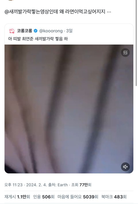 라결남으로 유명하자나ㅋ 트위터에서 라면먹는 영상 천만뷰 넘음 근데 이번에 새끼발가락 짤도 알티 엄청 탐ㅋ