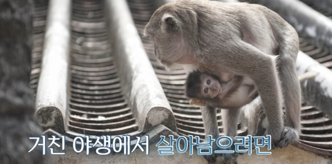 원숭이들은 태어나서 엄마에게 매달려야하는데...