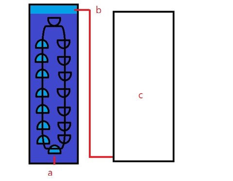 60BAR의 압력으로 수소를 분사하고, 수소가 상승하면서 터빈을 돌리고, B에 수소가 모여 C배관을 통해,