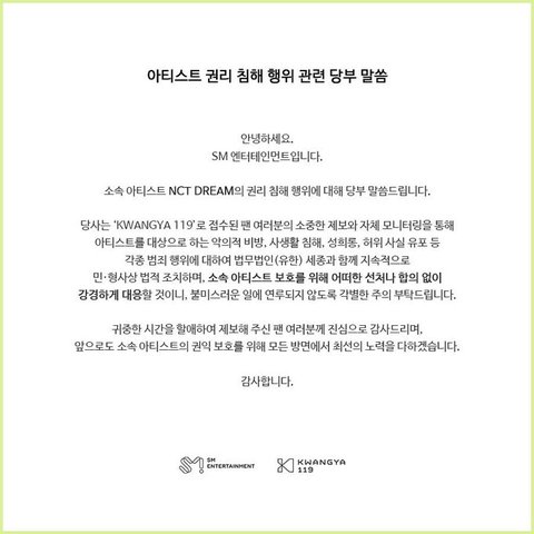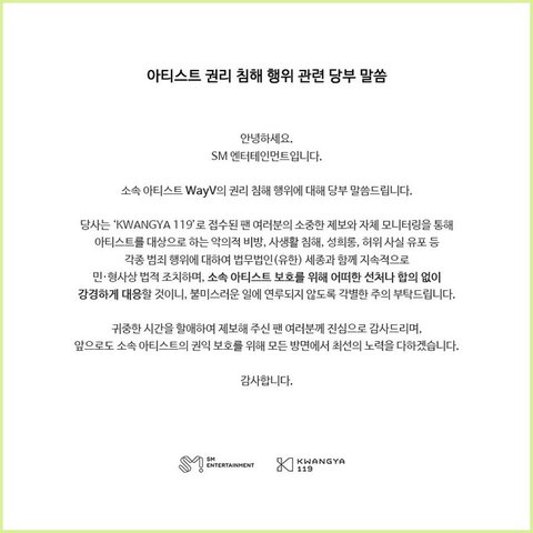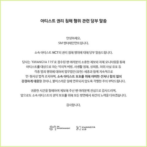 SM 엔시티 NCT 고소공지