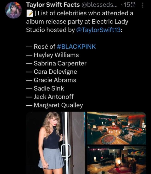 초대 객석에서 방방 뛰고있음ㅋㅋㅋㅋㅋㅋㅋ 작년 9월 테일러 프라이빗 파티에도 초대됐었던 로제
