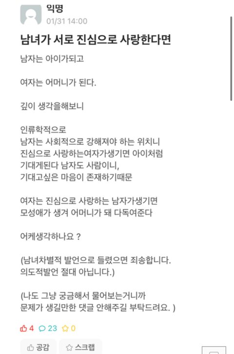 남녀의 사랑 다들 공감하시나요?
