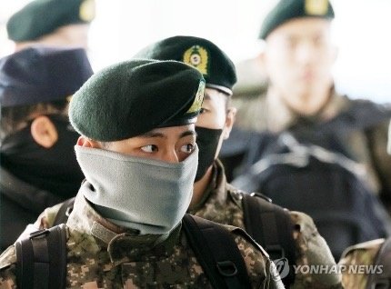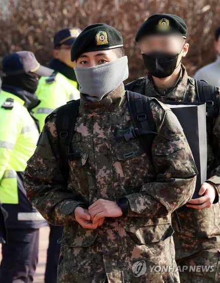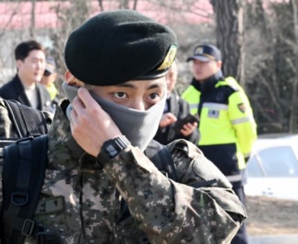 뷔는 수도방위사령부 특수임무대(SDT)에 지원해 1차 서류 전형, 2차 면접 및 체력 검사에 합격해 지난해 12월 11일 신병교육대에 입소했다.