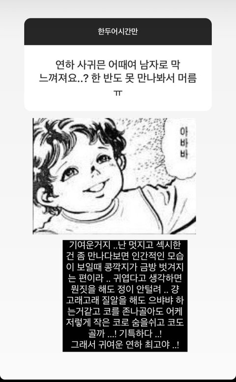 근데 뭔말인지 대충 알겠는게 섹시하고 지적인 캐릭터인 남돌파다가 탈덕한 이유가 가끔씩 나오는 인간적인? 이기적인? 그런 모습때문에 정떨어져서인데 지금 파는 남돌은 성격은 시크하지만 귀엽게 생겼고 막내답게 생활애교 많은 애란 말임 그래서 그런가 뭔 행동을 해도 걍 너무 귀엽고 사랑스러움.. 진짜 남자는 귀엽게 보이는 순간 답 없다는 말 뼈저리게 느끼는중임