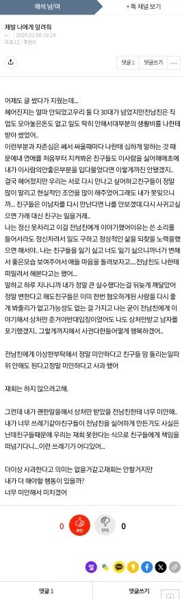 너 걔한테 많이 잘못한거 맞아 너도 아네