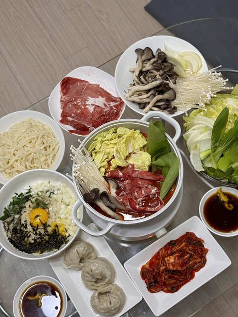 등촌샤브칼국수를 좋아해서 집에서 도전 해봤어요~소고기 샤브샤브 해먹고 마지막에는 칼국수랑 볶음밥으로 마무리!