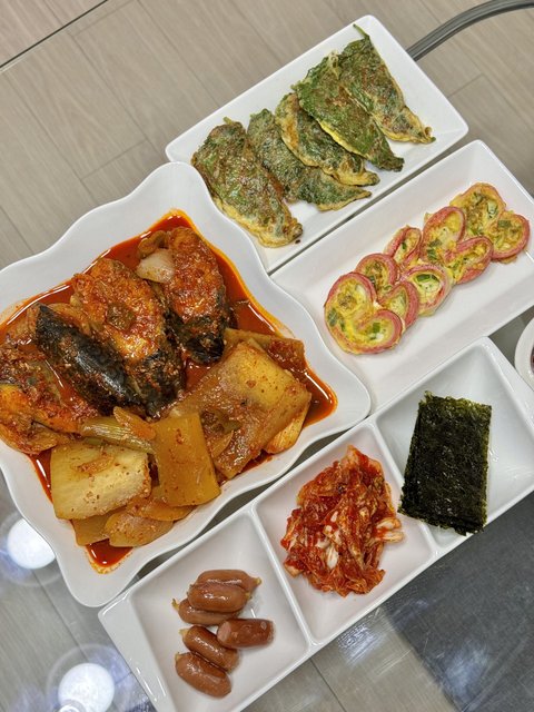 5)고등어무조림&깻잎전&맛살하트전
