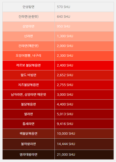 의외라는 반응 많은 라면 매운지수 순위