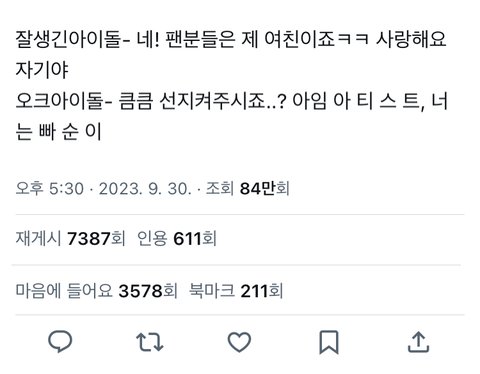 저때 생긴 열등감이랑 피해의식을 아직도 못버려서 다른 슴돌들로 갈아타고도 방탄에 부들대잖아ㅋㅋ 평생 방탄한테 열폭질하는 운명인 불..