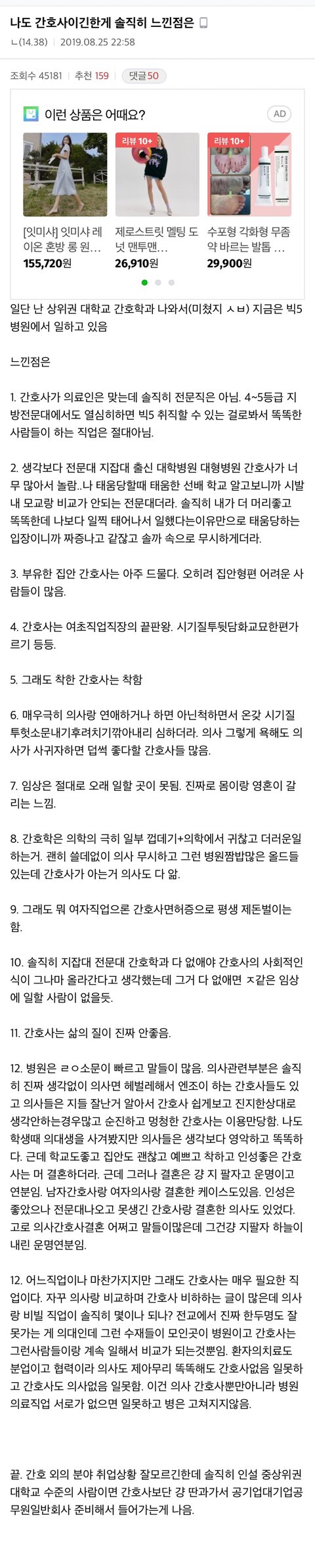 빅5 간호사가 간호사하면서 느낀점