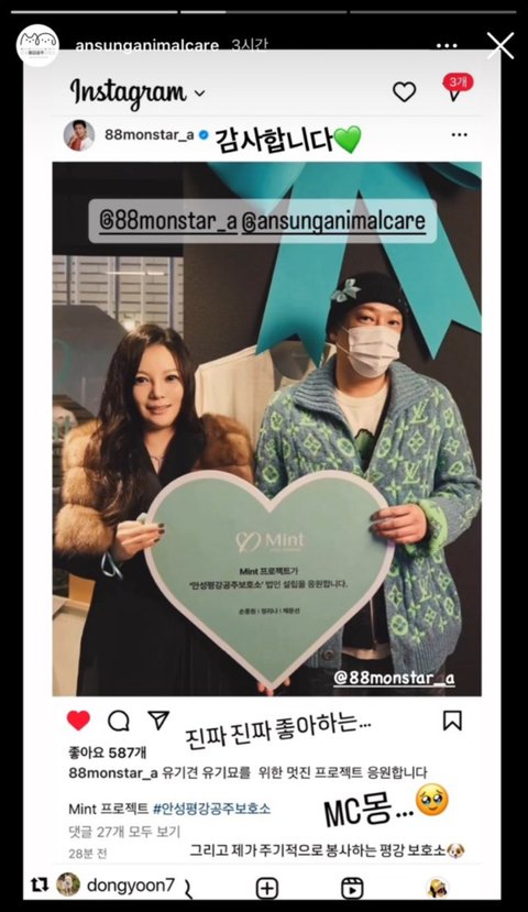 2월4일에 참석했던데 선한 영향력 펼치러 간듯!! 유기견 유기묘 보호센터? 응원하는 자리 같은데