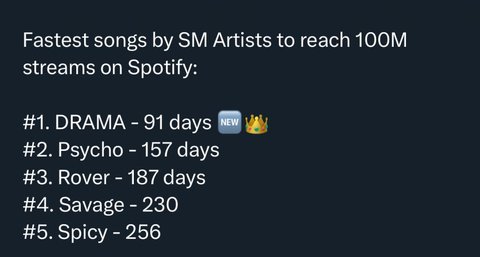 에스파 드라마 스포티파이 1억 스트피밍 돌파 (역대 SM 최단기록)