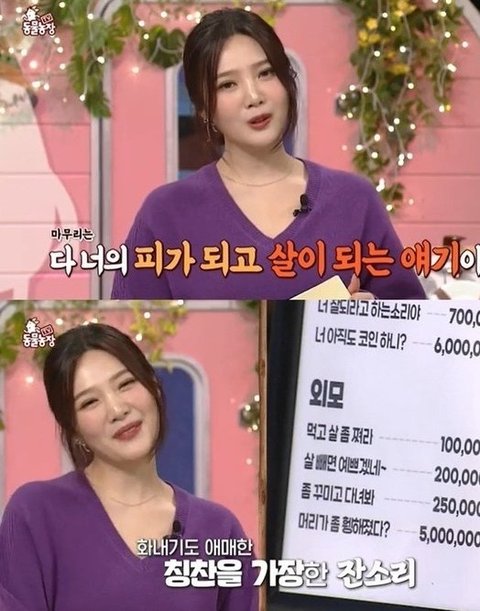 MC들은 잔소리 메뉴판을 보며 각자 듣기 싫은 잔소리를 꼽아보는 시간을 가졌다. 조이는 "많은 분들이 공감하실 것 같다. 지금도 예쁜데 살 빼면 더 예쁠 거라고 하더라. 살은 제가 알아서 빼겠다"고 말해 눈길을 끌었다.