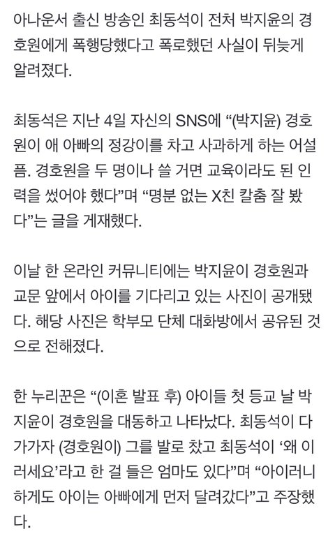 최동석, 전처 박지윤 경호원에 폭행당해…“명분 없는 칼춤”