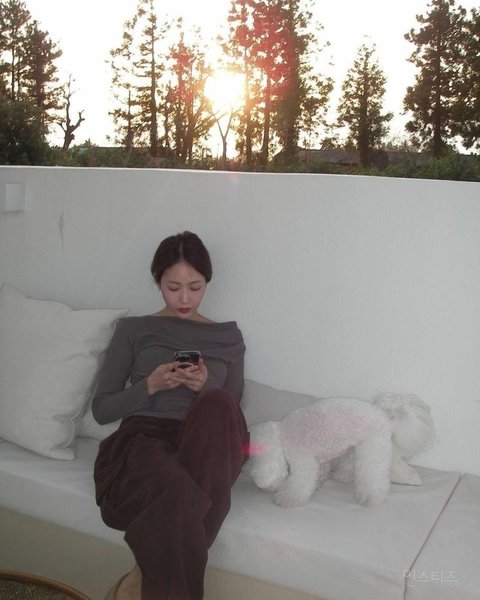 오늘 제주도 카페에서 반려견이랑 분위기 있게 사진 찍었네