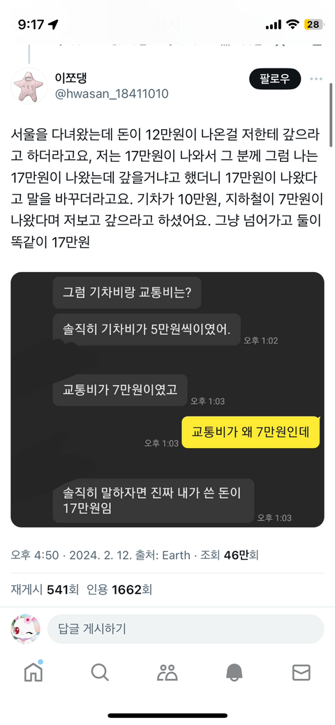 아니 저사람 누가봐도 잼민인데 성인인척 나이속인거아님..? 말투도 그렇고 .. 지하철비7만원나왔다는 기본적인 지식 하나도 모르는거보니까 잼민이가 성인인척 하는거같음 …