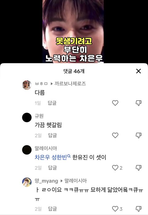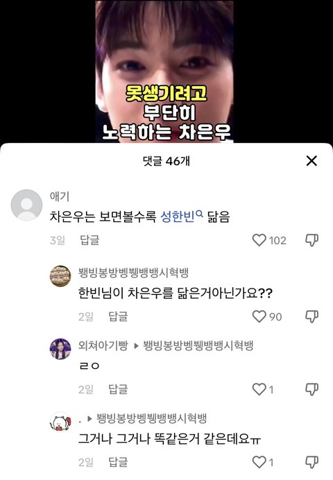 보아도 성한빈한테 차은우 닮았다고 했었음ㅋㅋㅋ 별개로 성한빈이 차은우를 닮은거지 전후가 잘못됐네