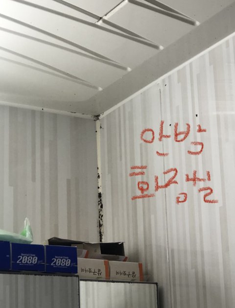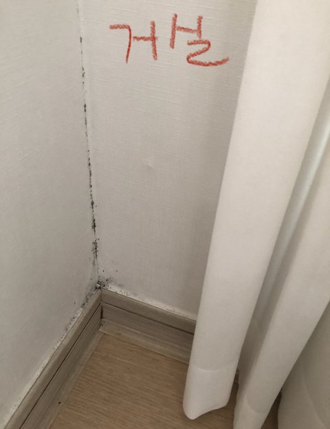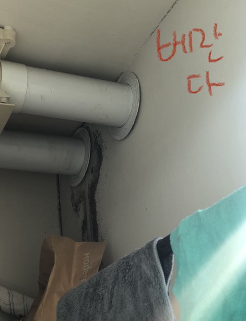 저정도면 잘못지은 수준이 맞는데.. 벽지뒷면은 이미 곰팡이로 전부 도배되있고 곰팡이 포자 공중에 둥둥.. 빨리 이사가세요 폐 기관지 조져집니다