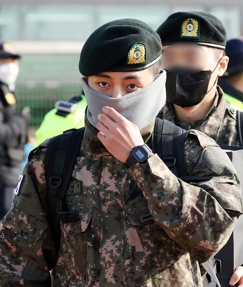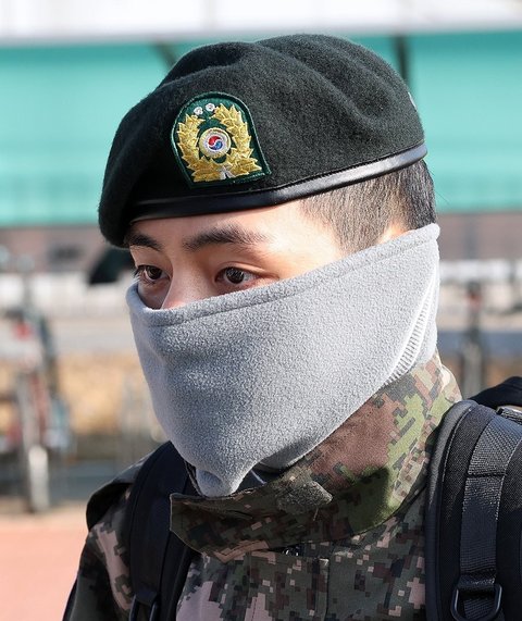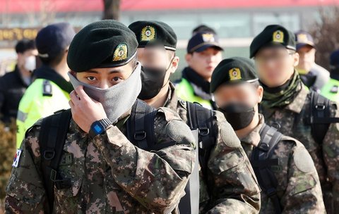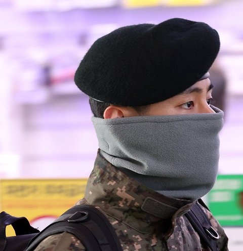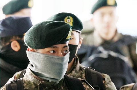 방탄 뷔 춘천역에서 자대로 이동하는 모습 기사 사진