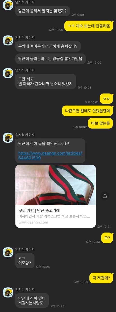그때 이 모든 사실을 알고 있던 우리 엄마가 당X에 내 가방이 올라왔다고 링크를 보냄
