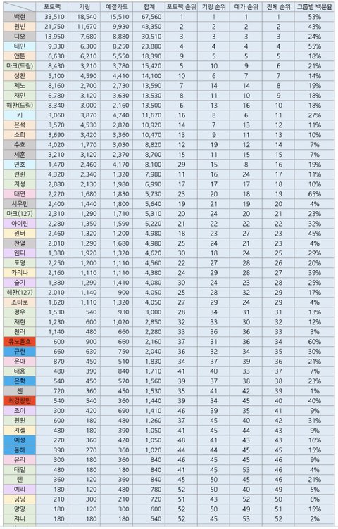 와 아직도 백현 전체 1위고 ㄷㄷㄷ