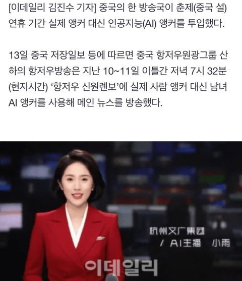 이후 2019년에는 신화통신이 새롭게 선보인 여성 AI 앵커가 등장했으며, 2022년 베이징 동계 올림픽 때는 중국 국영 CCTV가 청각 장애인들의 중계 시청을 위해 바이두가 개발한 ‘AI 수어 앵커’를 도입했다.