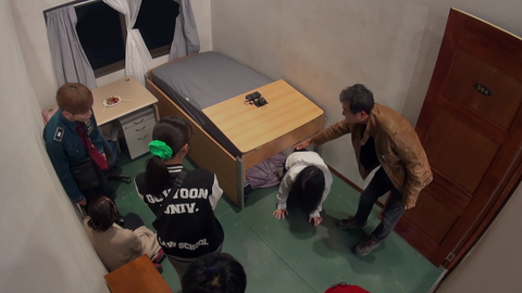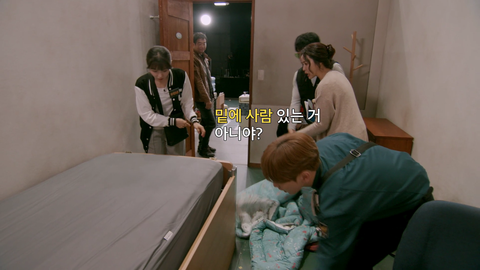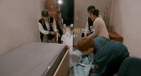 뭔가 수상하리만큼 큰 침대를 다같이 들춰보는데..