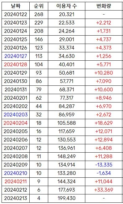 투어스 "첫 만남" 멜론 일간 순위 & 이용자 수 추이