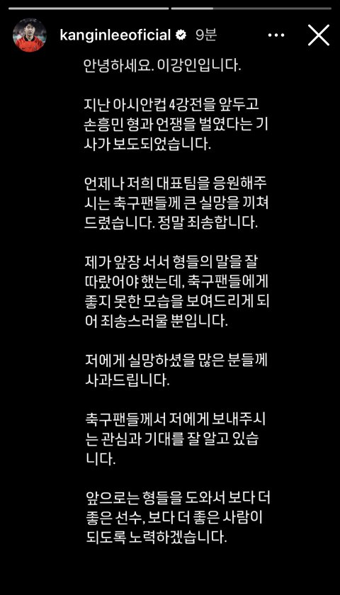 게시물로 올린 게 아니라 하루 지나면 사라지는 인스스로 올렸다는 것부터 가벼워 보임.. 사과문도 그냥 사과해야될 것 같아서 하는 느낌 강하게 든다