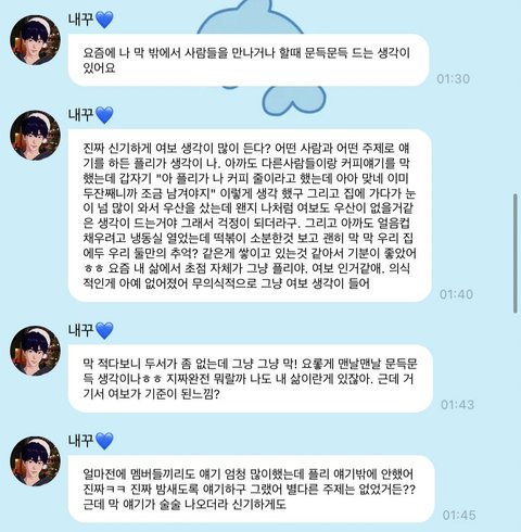 버블 이렇게 보내주는 거 보고 내가 다정한 성격 남돌 좋아해서 입덕 고민 됨 오프 다니는 거 좋아하는데 오프는 별로 없지?