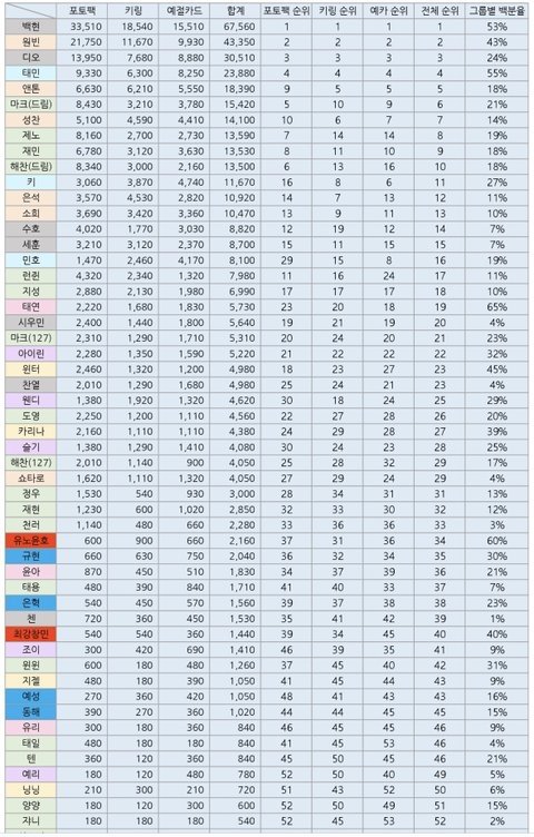 슈주: 규현>은혁>예성>동해