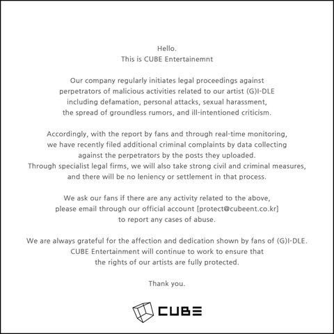 큐브가 드디어 법적대응 한다 여기서 전소연뿐만 아니라 모든 멤버들 성희롱이랑 악플 단 애들 많은데 잘됐네ㅋㅋㅋㅋㅋㅋㅋㅋㅋㅋㅋㅋㅋㅋㅋㅋㅋ