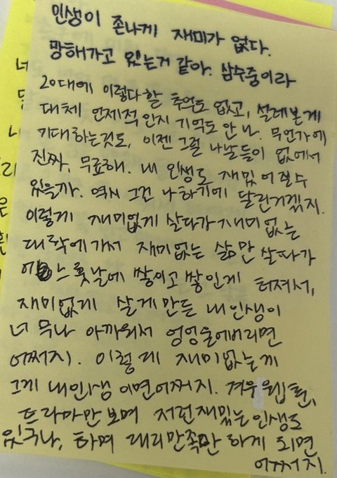 그때 그 상황이 이 포스트잇 보자마자 다시금 떠올라서 ptsd옴