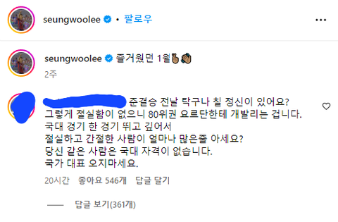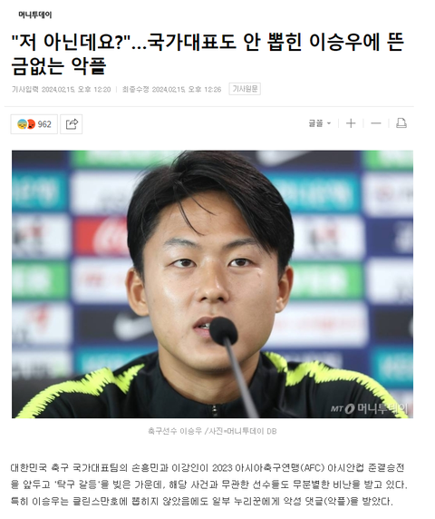 "저 아닌데요?"…국가대표도 안 뽑힌 이승우에 뜬금없는 악플