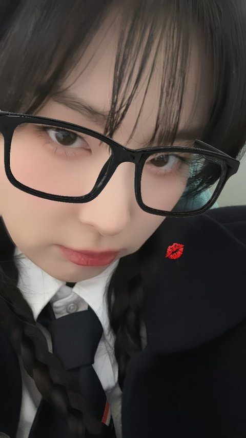 셀카 개졸귘ㅋㅋ 필터 효과로 뿔테 안경 한 것 같은데 귀여워