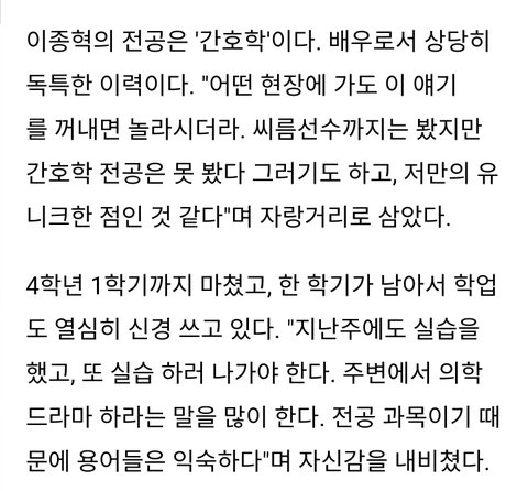 간호과를 졸업까지한 남자 배우 처음봐서 가져옴