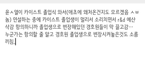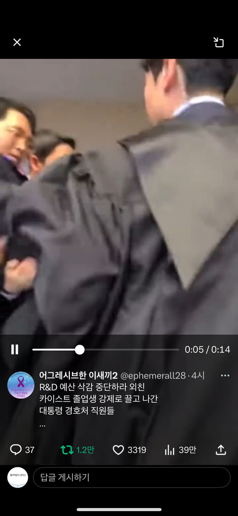 글 잘만 올라와 있구만 뭘 안올려진다는거임? 그리고 그 누구든 자기 의견을 말할때는 때와 장소에 맞게, 법과 절차를 지켜서 좀 쳐 해라. 아무데서나 깽판치고 들이받는거 무지성 옹호할때 민주주의 팔아먹지 말고ㅋㅋㅋㅋㅋ 저 자리에 윤석옆이 있던 없던 소란 피운거 자체만으로도 끌려나가는게 당연한거임. 난 첨부짤처럼 이재명이 똑같은짓 했어도 그걸로는 깔 생각 없음. 저렇게 무지성으로 들이받는 방식의 정치병자들 인간으로 안봐서. 민주주의가 뭔 아무 난장이나 피우고 막 쳐들어가고 들이대고 이런거 용인해주는건줄 아나? 이건 국민의 권리가 아님 다른 국민들 권리 침해하는 행패지. 그리고 뭘 누군가는 항의할줄 알고 변장을 시켜ㅋㅋㅋㅋㅋㅋ 우리나라 국가 원수인데, 군중이 많은 곳에서는 위장경호 하는거 당연한거 아님?ㅋㅋㅋㅋㅋㅋㅋ 아니 정치까지 갈것도 없이 영화에서도 종종 나오지 않낰ㅋㅋㅋㅋㅋㅋㅋㅋㅋㅋㅋ다들 나 경호원이요 하고 있으면 테러범 입장에서 얼마나 피하기 쉽겠음?