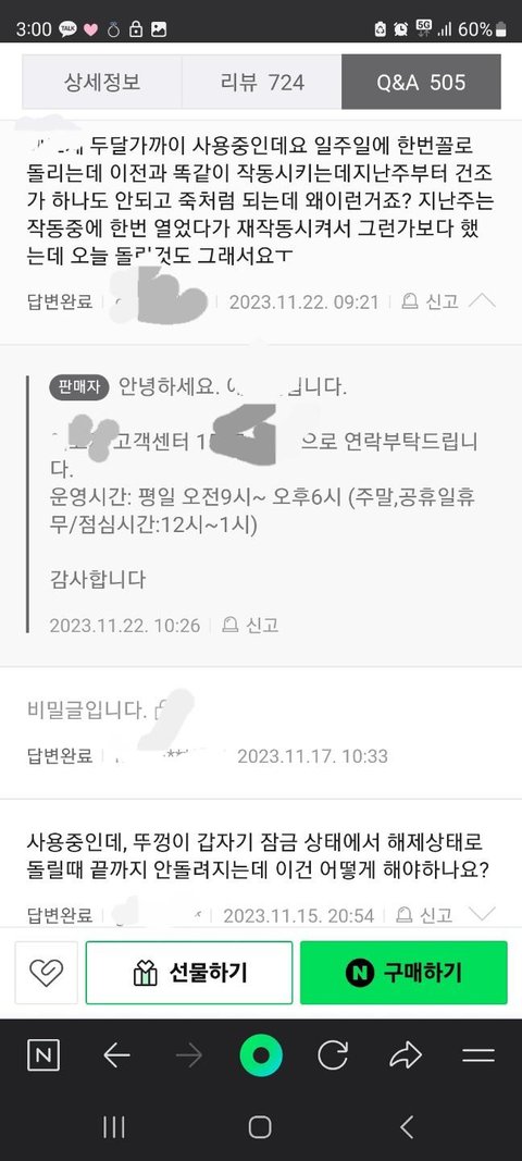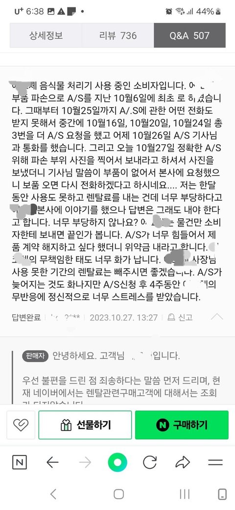 언제 또 고장날지 모르는 제품을 스트레스 받아가며