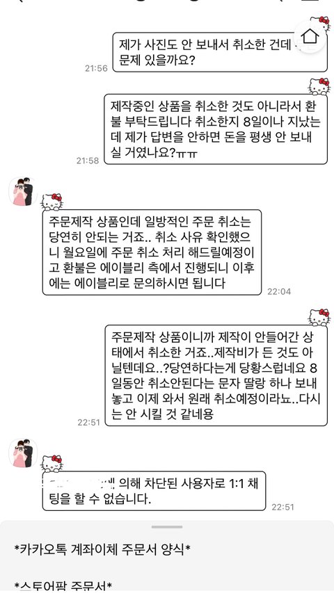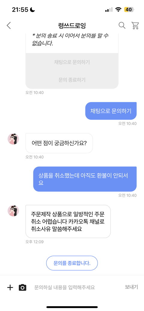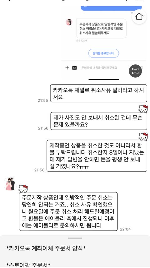 진짜 어이가 없음 사진도 안 보낸 상태에서 취소했는데 환불 안된다는 문자 딸랑 보내놓고 취소문의 상태로 계속 해놓음 ㅋㅋㅋㅋ 내가 까먹었으면 돈 꿀꺽 먹었을 거 아니야