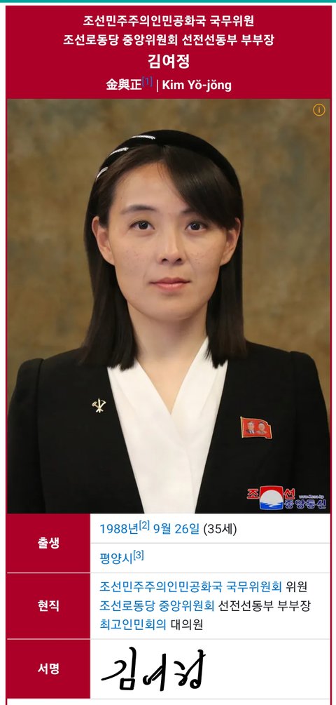 (사진2 설명) 김여정(金與正, Kim Yŏ-jŏng) 조선민주주의인민공화국 국무위원 <출처 : NAVER 나무위키>