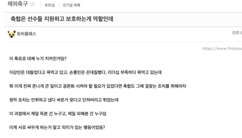저 얘기 덕분에 지금 축협,클리스만 잘못에서 손흥민vs이강인 구도로 만들어서 선수단이고 여론이고 엉망 만들고 있는데