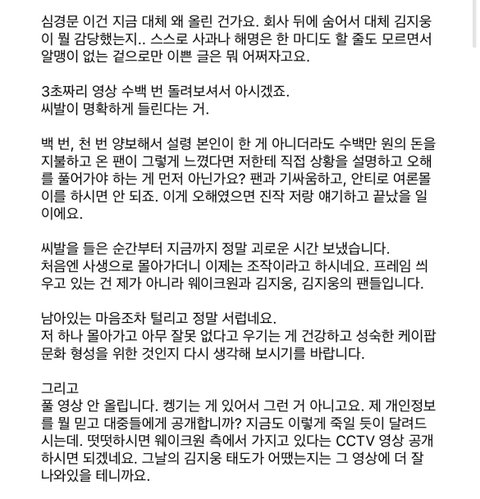 김지웅 욕설 사건 팬 본인 2차 입장문
