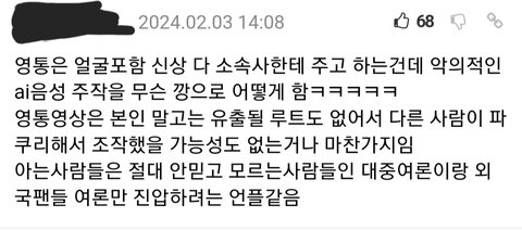 애초에 영통팬싸 한거면 얼굴 나이 비롯해서 개인정보를 소속사가 다 알텐데 그 상태로 음성 조작해서 올린다? 말이 되냐고 ㅋㅋㅋㅋ 저 당사자가 진짜 사생이고 음성조작범이면 김지웅 해명문이 아니라 고소공지가 먼저 떴겠지